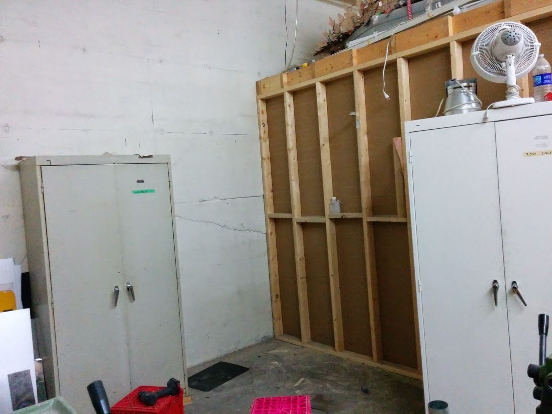 The shop wall, (between the main area and the shop) will be taken down AFTER we move out all the pallets of stuff. Because the laser room is inside the dusty shop, it can be taken down now as the drywall dust probably wonât effect anything left in the shop.